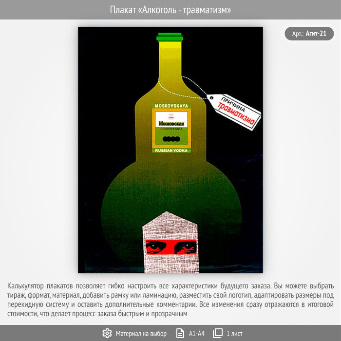 Плакат «Алкоголь - травматизм» (Агит-21, 1 лист) в Ижевске купить