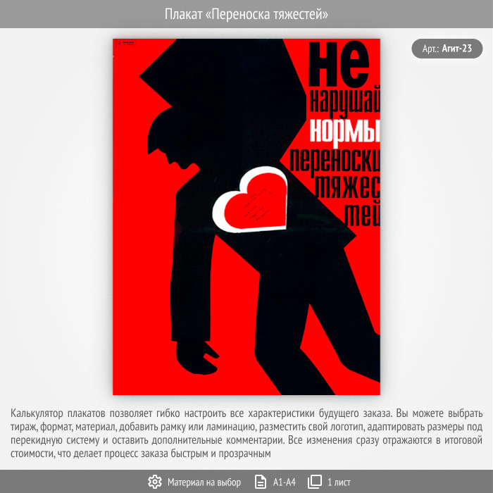 Плакат «Переноска тяжестей» (Агит-23, 1 лист) в Ижевске купить