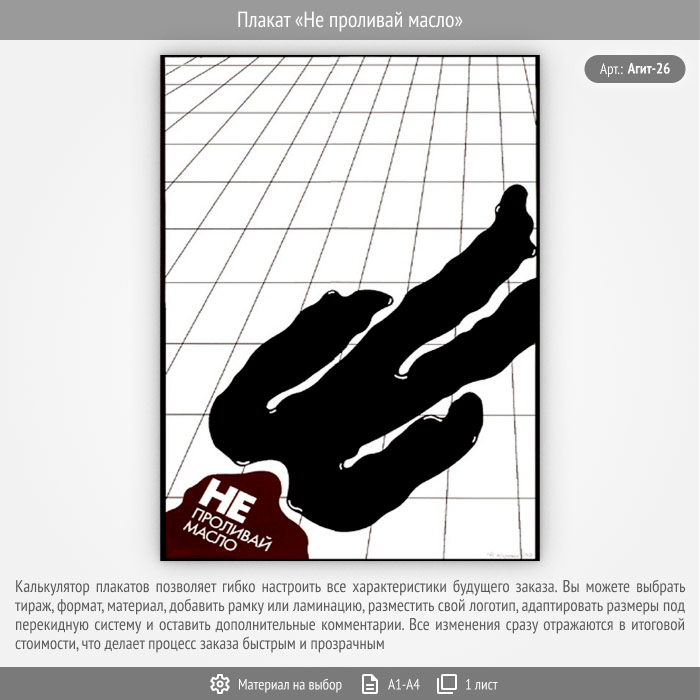 Плакат «Не проливай масло» (Агит-26, 1 лист) в Ижевске купить