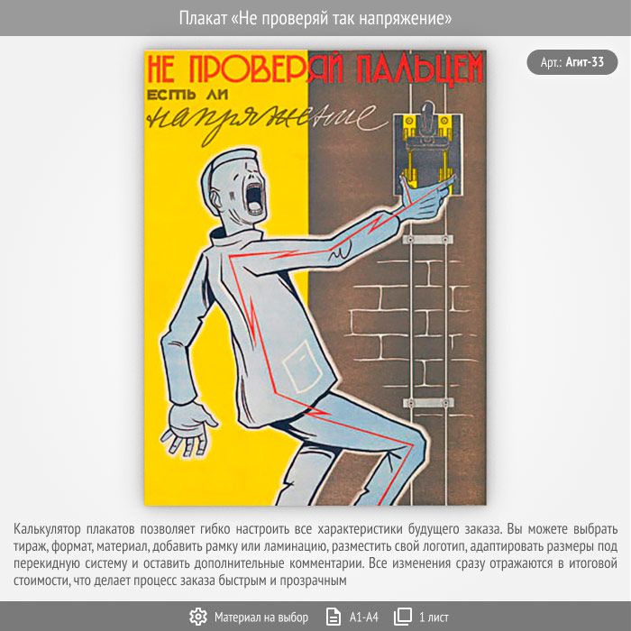 Плакат «Не проверяй так напряжение» (Агит-33, 1 лист) в Ижевске купить