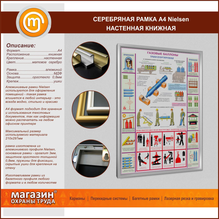 Багетная настенная рамка «Nielsen» А4 формата, книжная, матовое серебро в Ижевске купить