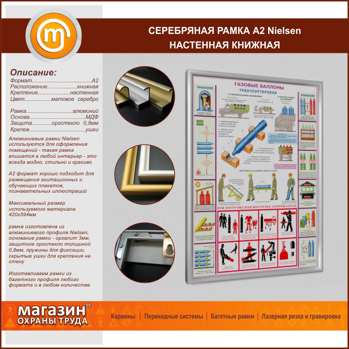 Багетная настенная рамка «Nielsen» А2 формата, книжная, матовое серебро в Ижевске купить