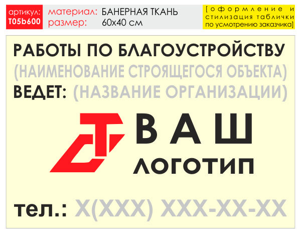 Баннер «Работы по благоустройству», T05 (баннерная ткань, 60х40 см) в Ижевске купить