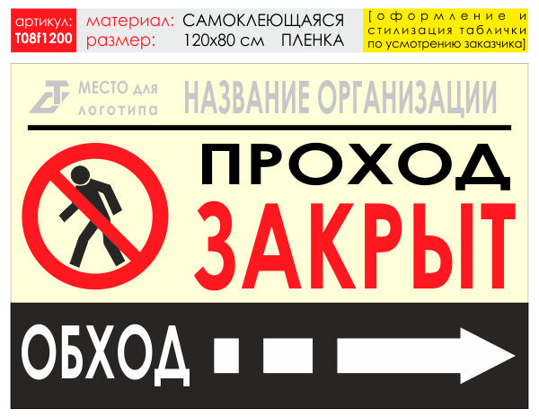 Баннер «Обход справа», T08 (самоклеящаяся плёнка, 120х90 см) в Ижевске купить