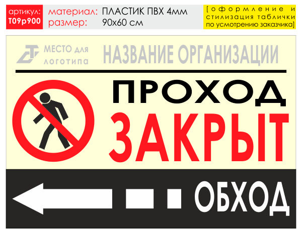 Баннер «Обход слева», T09 (пластик 4 мм, 90х60 см) в Ижевске купить