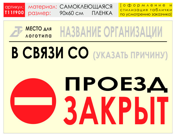Баннер «Проезд закрыт», T11 (самоклеящаяся плёнка, 90х60 см) в Ижевске купить