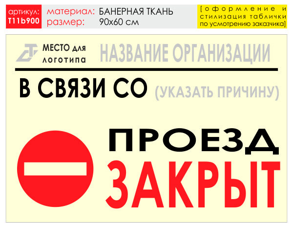 Баннер «Проезд закрыт», T11 (баннерная ткань, 90х60 см) в Ижевске купить