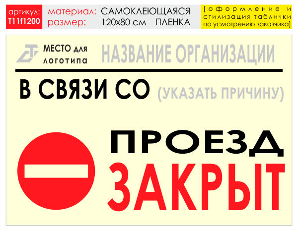 Баннер «Проезд закрыт», T11 (самоклеящаяся плёнка, 120х90 см) в Ижевске купить