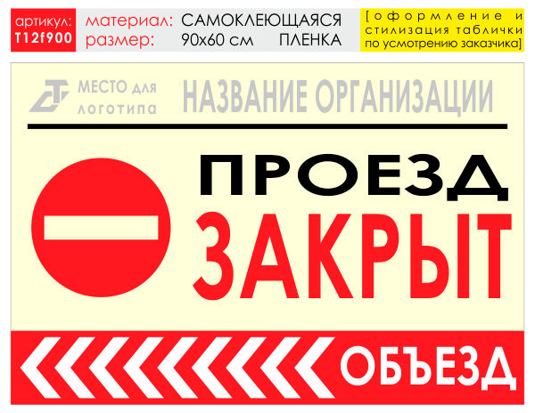 Баннер «Объезд слева», T12 (самоклеящаяся плёнка, 90х60 см) в Ижевске купить
