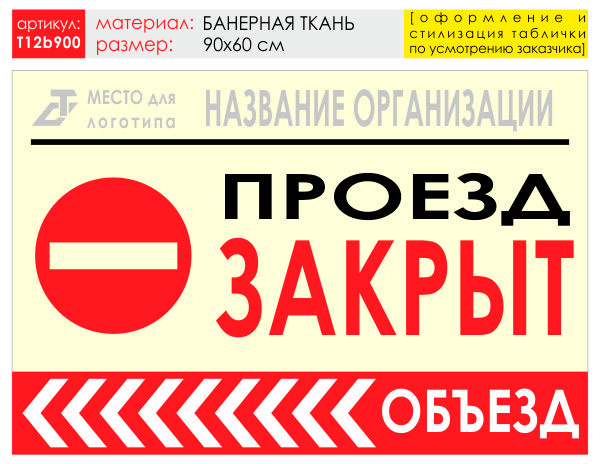 Баннер «Объезд слева», T12 (баннерная ткань, 90х60 см) в Ижевске купить