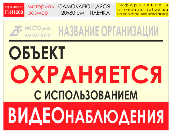 Баннер «Объект охраняется», T16 (самоклеящаяся плёнка, 120х90 см) в Ижевске купить