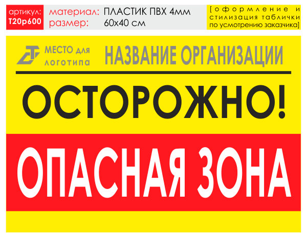 Баннер «Опасная зона», T20 (пластик 4 мм, 60х40 см) в Ижевске купить