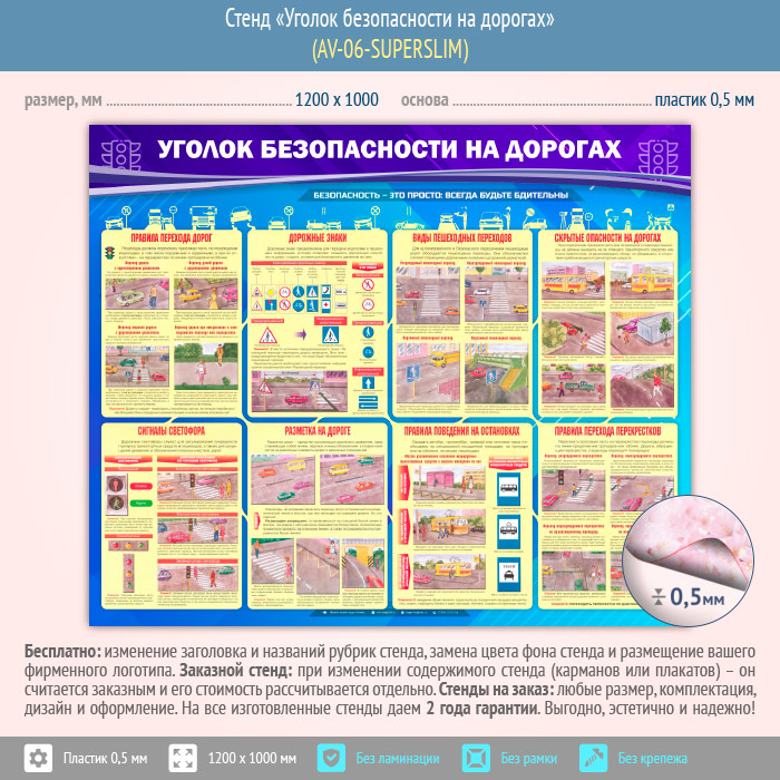 Стенд «Уголок безопасности на дорогах» (AV-06-SUPERSLIM) в Ижевске купить