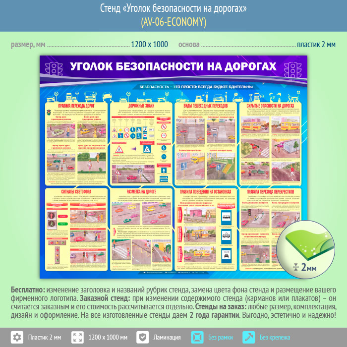 Стенд «Уголок безопасности на дорогах» (AV-06-ECONOMY) в Ижевске купить