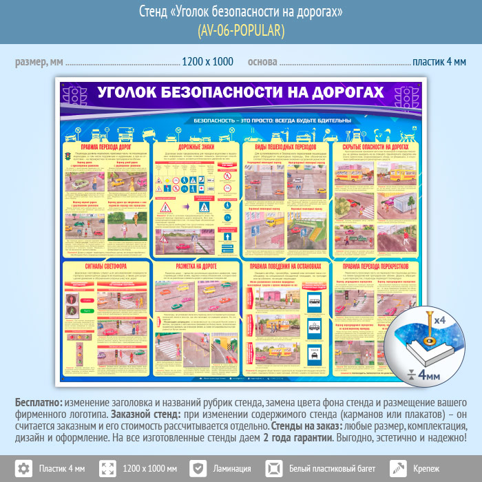 Стенд «Уголок безопасности на дорогах» (AV-06-POPULAR) в Ижевске купить