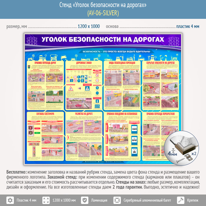 Стенд «Уголок безопасности на дорогах» (AV-06-SILVER) в Ижевске купить