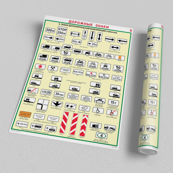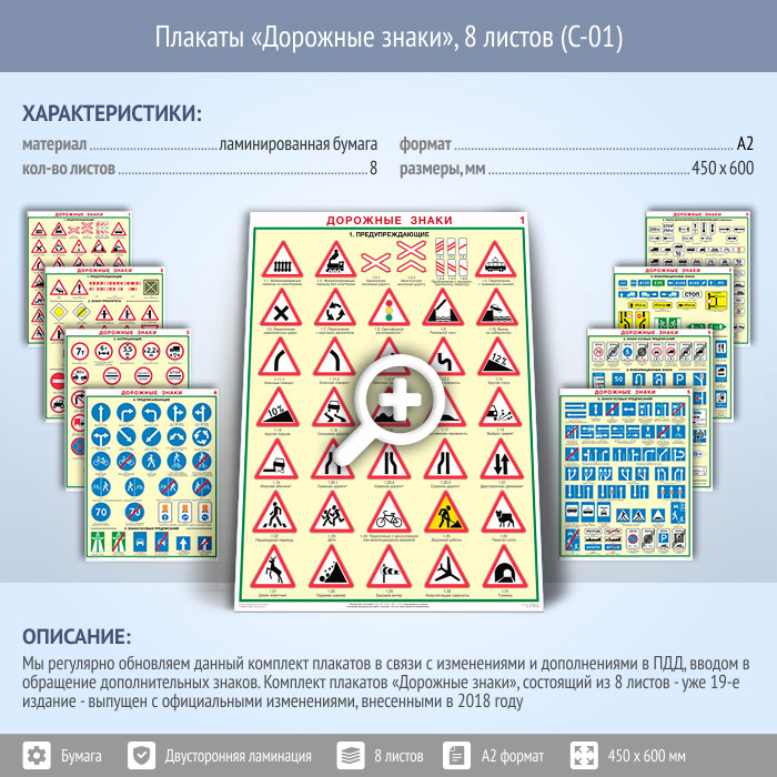 Плакаты «Дорожные знаки» (С-01, ламинированная бумага, А2, 8 листов) в Ижевске купить