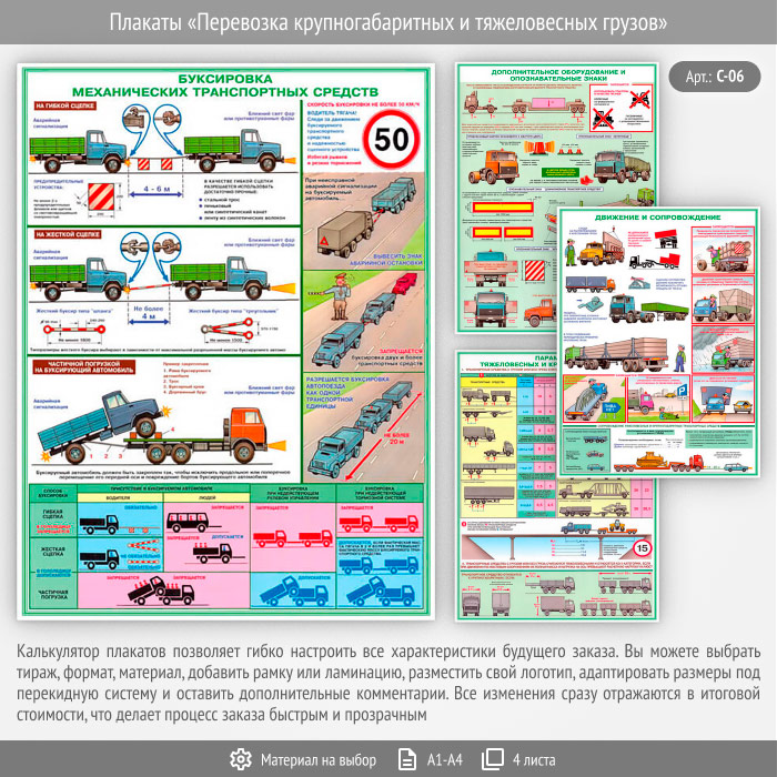 Плакаты «Перевозка крупногабаритных и тяжеловесных грузов» (С-06, 4 листа) в Ижевске купить