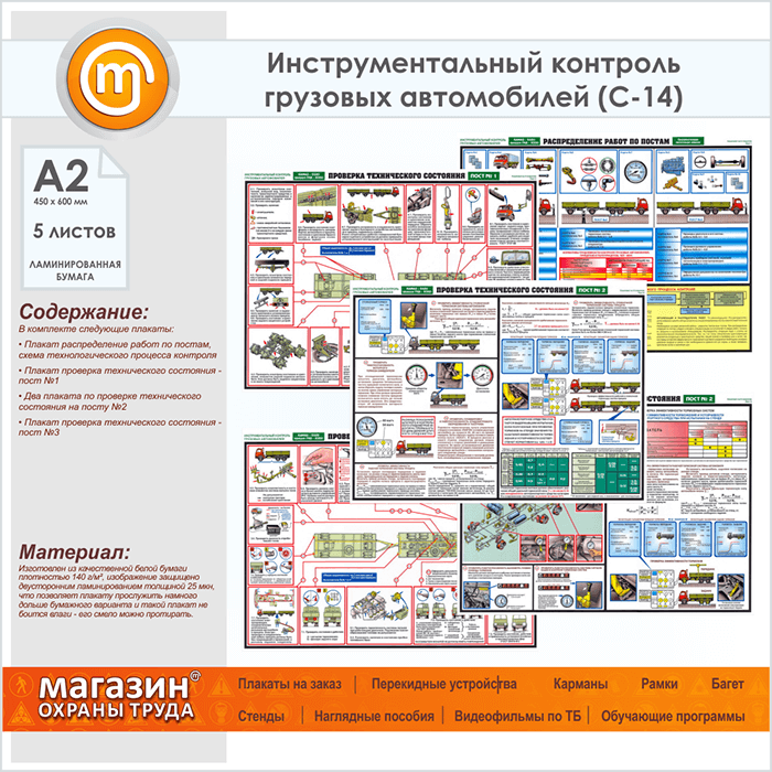 Плакаты «Инструментальный контроль грузовых автомобилей» (С-14, ламинированная бумага, А2, 5 листов) в Ижевске купить