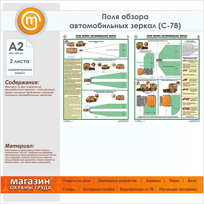 Плакаты «Поля обзора автомобильных зеркал» (С-78, ламинированная бумага, А2, 2 листа) в Ижевске купить