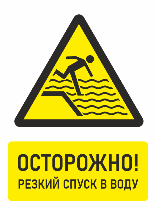 Знак «Осторожно! Резкий спуск в воду», БВ-32 (пластик 2 мм, 300х400 мм) в Ижевске купить