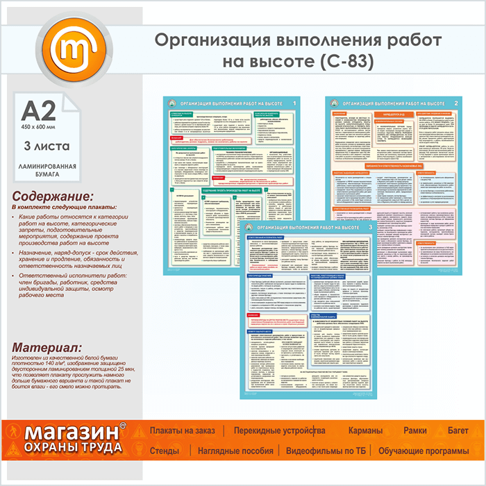 Плакаты «Организация выполнения работ на высоте» (С-83, ламинированная бумага, А2, 3 листа) в Ижевске купить