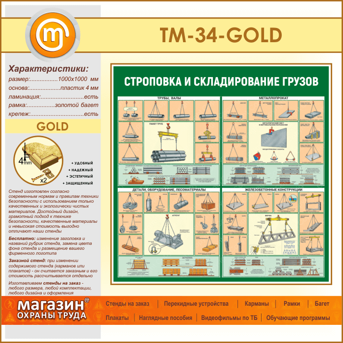 Стенд «Строповка и складирование грузов» (TM-34-GOLD) в Ижевске купить
