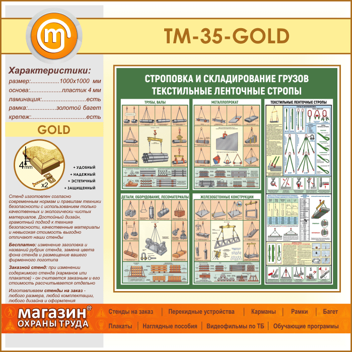Стенд «Строповка и складирование грузов. Текстильные ленточные стропы» (TM-35-GOLD) в Ижевске купить