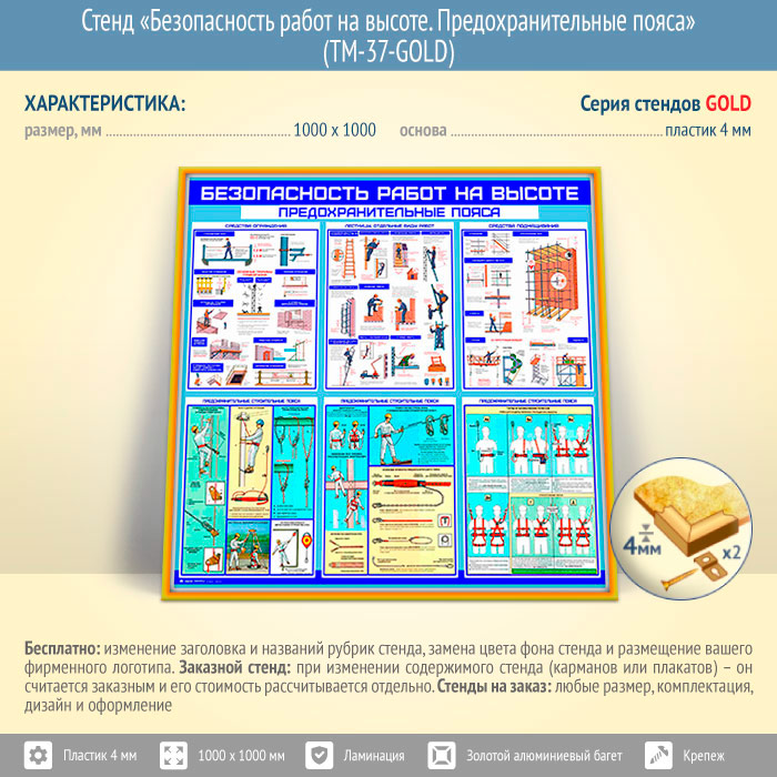 Стенд «Безопасность работ на высоте. Предохранительные пояса» (TM-37-GOLD) в Ижевске купить