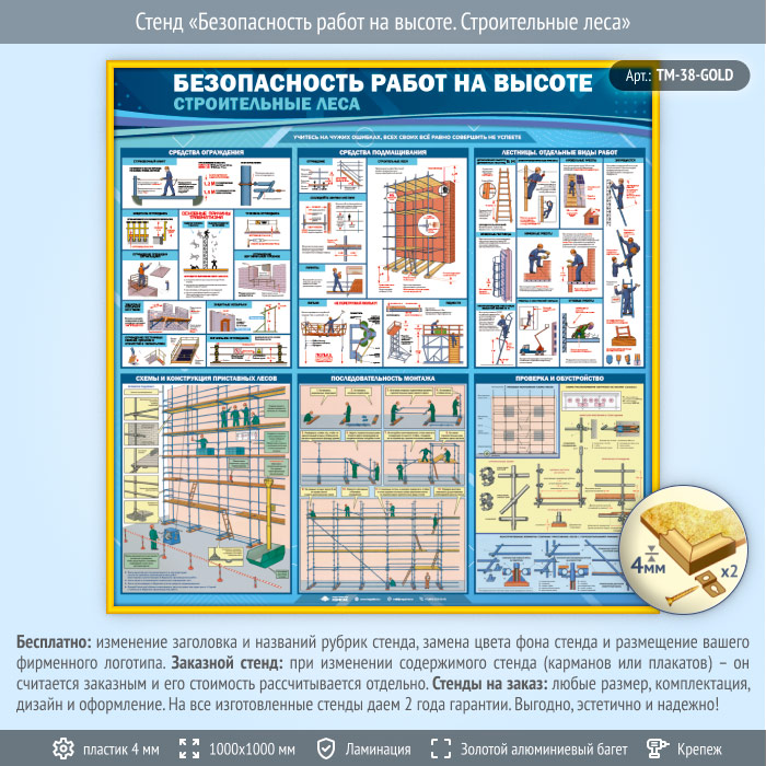 Стенд «Безопасность работ на высоте. Строительные леса» (TM-38-GOLD) в Ижевске купить