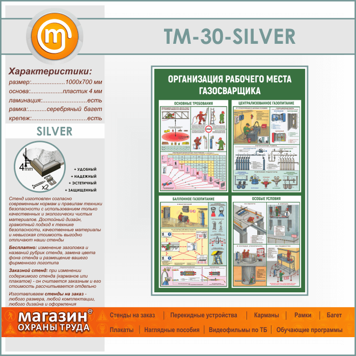 Стенд «Организация рабочего места газосварщика» (TM-30-SILVER) в Ижевске купить