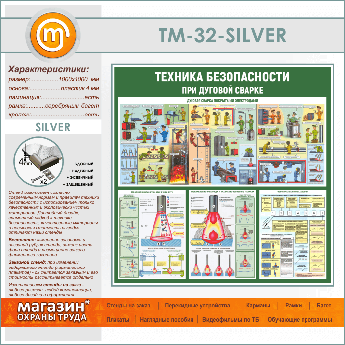 Стенд «Техника безопасности при дуговой сварке» (TM-32-SILVER) в Ижевске купить