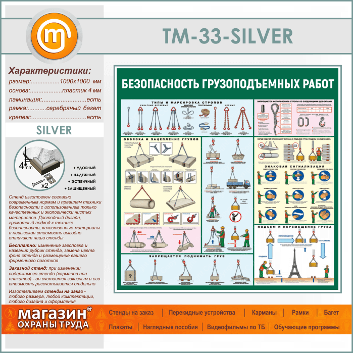 Стенд «Безопасность грузоподъемных работ» (TM-33-SILVER) в Ижевске купить