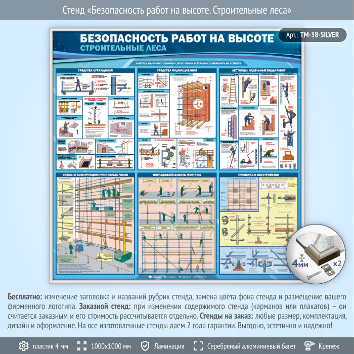 Стенд «Безопасность работ на высоте. Строительные леса» (TM-38-SILVER) в Ижевске купить