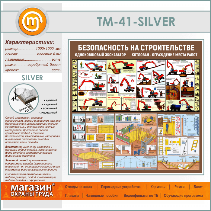 Стенд «Безопасность земляных работ. Экскаватор, котлован» (TM-41-SILVER) в Ижевске купить