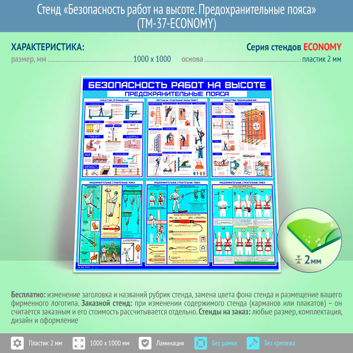 Стенд «Безопасность работ на высоте. Предохранительные пояса» (TM-37-ECONOMY) в Ижевске купить