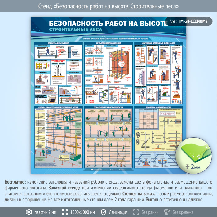 Стенд «Безопасность работ на высоте. Строительные леса» (TM-38-ECONOMY) в Ижевске купить