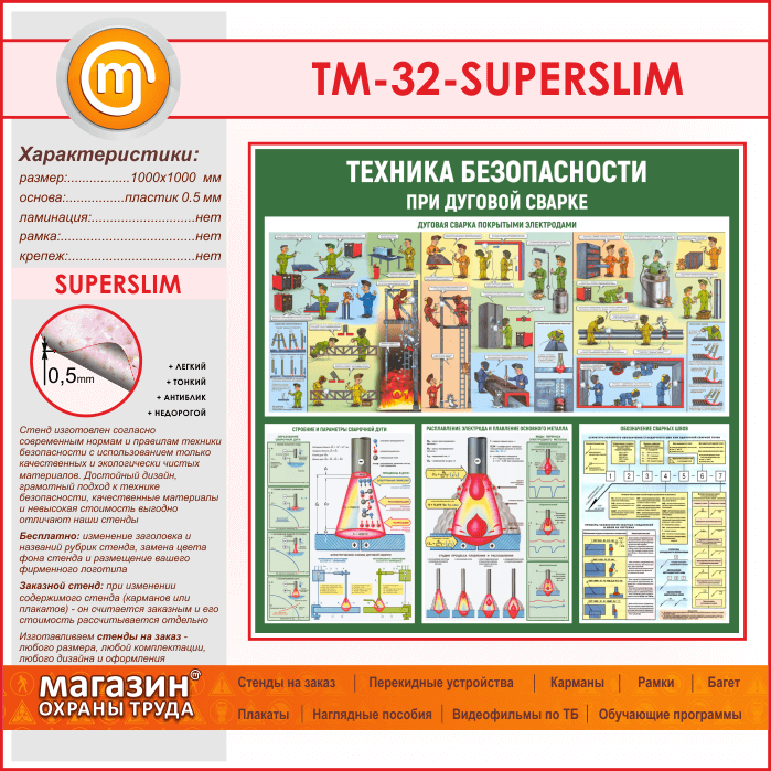 Стенд «Техника безопасности при дуговой сварке» (TM-32-SUPERSLIM) в Ижевске купить