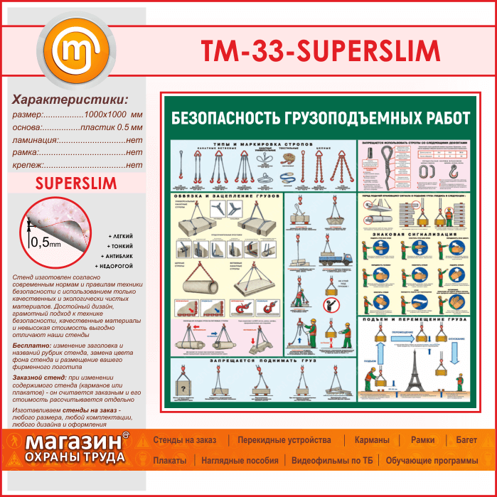 Стенд «Безопасность грузоподъемных работ» (TM-33-SUPERSLIM) в Ижевске купить