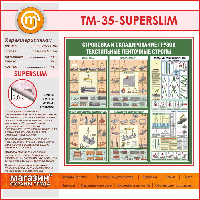 Стенд «Строповка и складирование грузов. Текстильные ленточные стропы» (TM-35-SUPERSLIM) в Ижевске купить