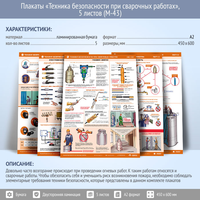 Плакаты «Техника безопасности при сварочных работах» (М-43, ламинированная бумага, А2, 5 листов) в Ижевске купить