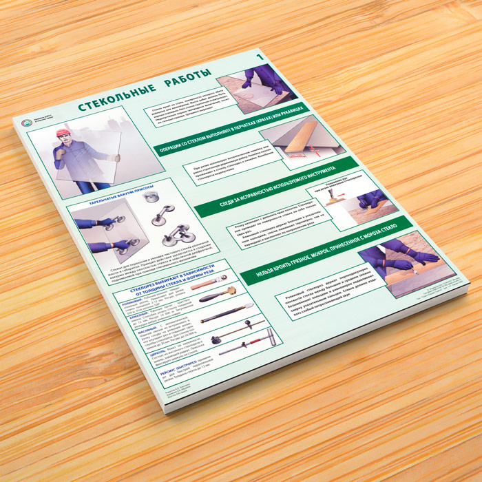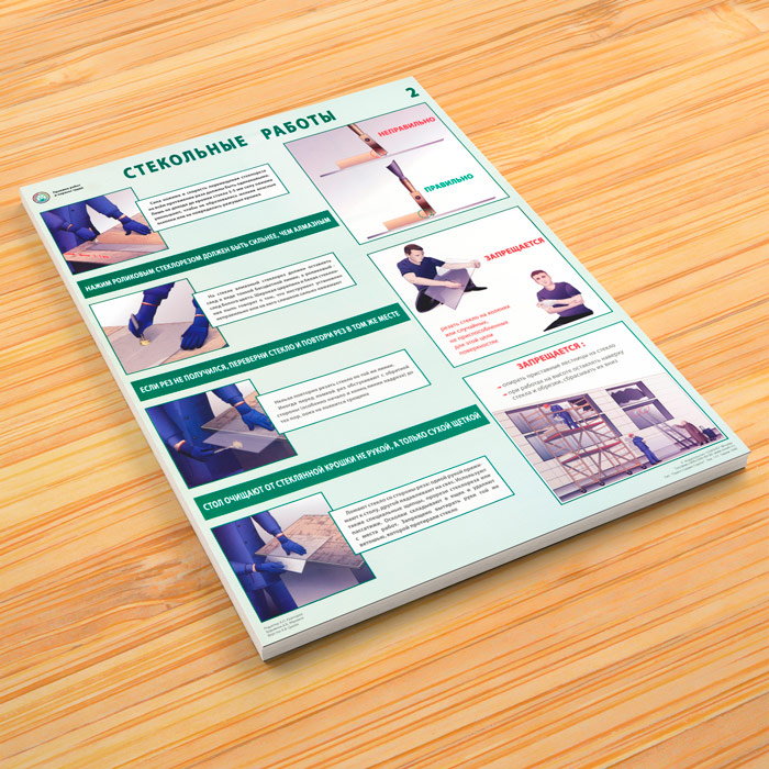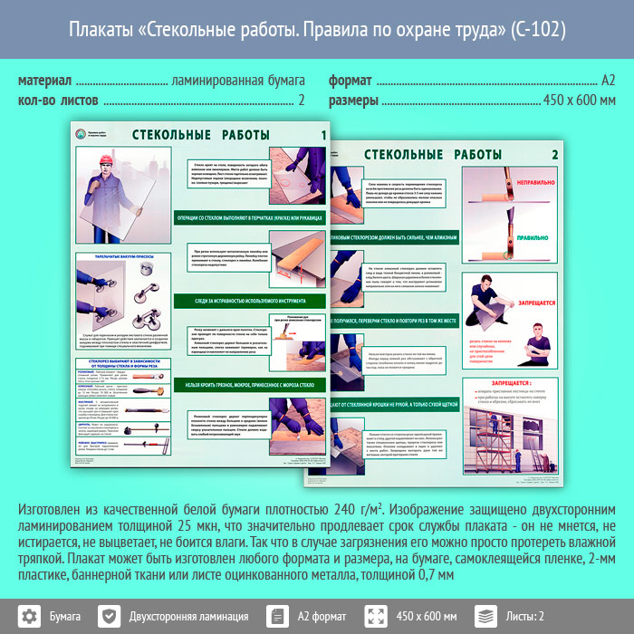 Плакаты «Стекольные работы. Правила по охране труда» (С-102, ламинированная бумага, А2, 2 листа) в Ижевске купить