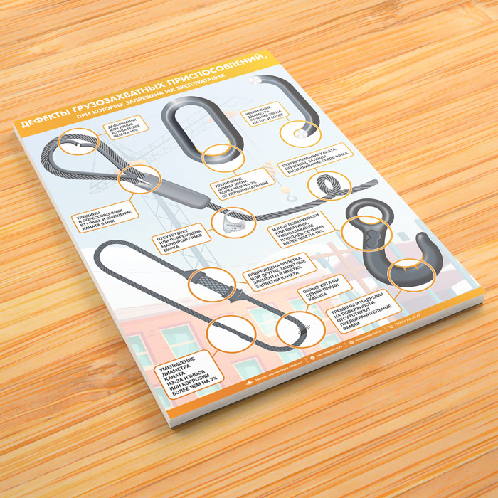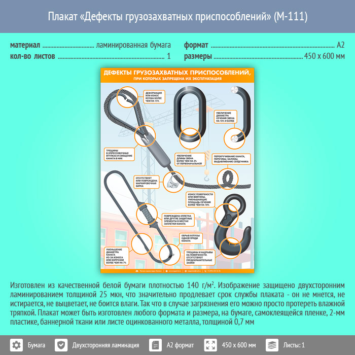Плакат «Дефекты грузозахватных приспособлений» (М-111, ламинированная бумага, А2, 1 лист) в Ижевске купить