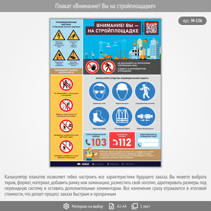 Плакат «Внимание! Вы на стройплощадке» с QR (М-136, 1 лист) в Ижевске купить