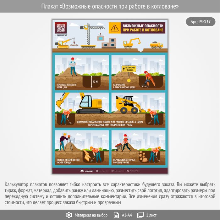 Плакат «Возможные опасности при работе в котловане» с QR (М-137, 1 лист) в Ижевске купить