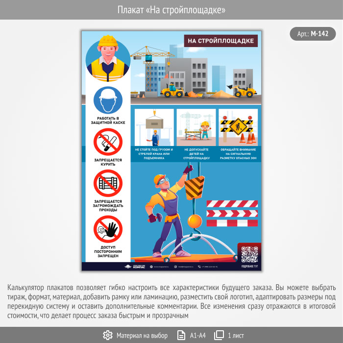Плакат «На стройплощадке» с QR (М-142, 1 лист) в Ижевске купить