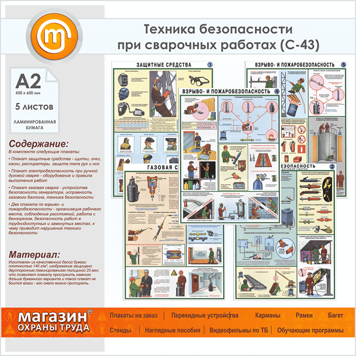 Плакаты «Техника безопасности при сварочных работах» (С-43, ламинированная бумага, А2, 5 листов) в Ижевске купить