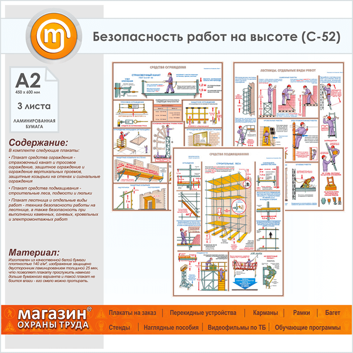 Плакаты «Безопасность работ на высоте» (С-52, ламинированная бумага, А2, 3 листа) в Ижевске купить