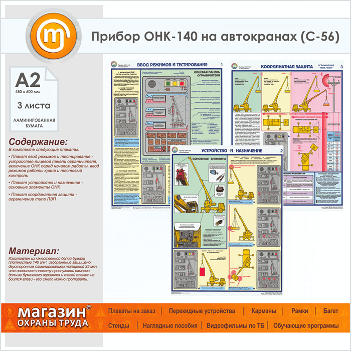 Плакаты «Прибор ОНК-140 на автокранах» (С-56, ламинированная бумага, А2, 3 листа) в Ижевске купить