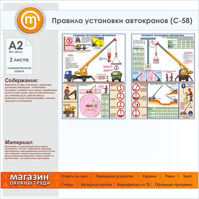 Плакаты «Правила установки автокранов» (С-58, ламинированная бумага, А2, 2 листа) в Ижевске купить